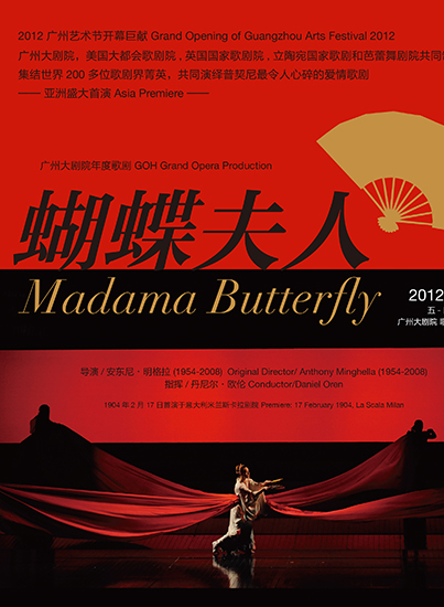 2012年廣州大劇院繼續沿用與國際劇院聯合制作的這一模式,而這次選中的是奧斯卡得主安東尼·明格拉執導的版本,為紐約大都會歌劇院、英國國家歌劇院、立陶宛國家歌劇院與芭蕾舞劇院的聯合制作。綜合舞臺、演唱和樂團三方面的成就,廣州大劇院《蝴蝶夫人》國際一流的制作無可爭議地成為2012年度中國歌劇舞臺上最為成功的歌劇演出,獲得《音樂周報》評選的年度最佳歌劇第一名的殊榮,并稱廣州大劇院優秀的音場環境也讓這里成為國內上演歌劇的最佳場所;中國歌唱家和慧演活了巧巧桑的柔情似水,精彩的演出無疑地奠定了她在樂迷以及眾多樂評人心中無人能出其右的地位。